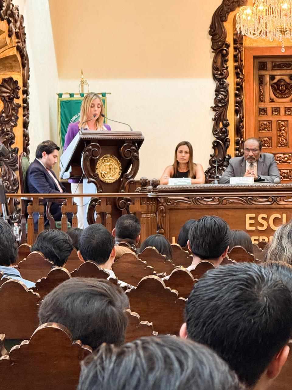 Más tarde, la doctora Morales fue recibida en la Escuela Libre de Derecho de Puebla, donde dictó la conferencia magistral “Impartición de justicia en México”, ante un auditorio compuesto por estudiantes, académicos y público en general. En su mensaje, subrayó la importancia de garantizar que la Suprema Corte responda a las necesidades sociales del país con independencia, visión ciudadana y firme respeto a los derechos humanos.