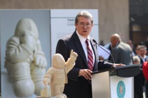 ¡Vaya contraste el que amaneció hoy en San Lázaro! Entre el ir y venir de trajes sastres, iniciativas y el café de las diez, un invitado de bronce y resina se robó la cámara. Ricardo Monreal Ávila, presidente de la Junta de Coordinación Política (Jucopo), inauguró este miércoles la exposición escultórica de «Timo» —ese entrañable hombrecito de Rodrigo de la Sierra—, convirtiendo la plaza central del recinto en un espejo irónico de la vida cotidiana de los mexicanos.